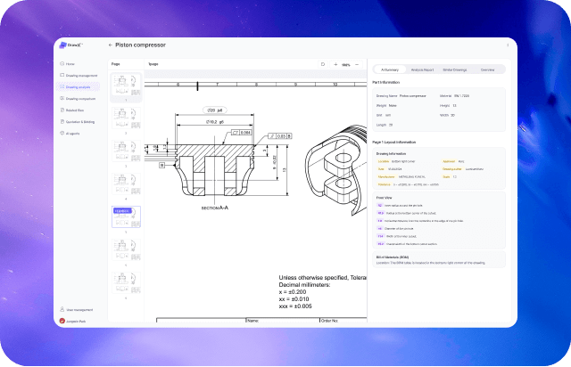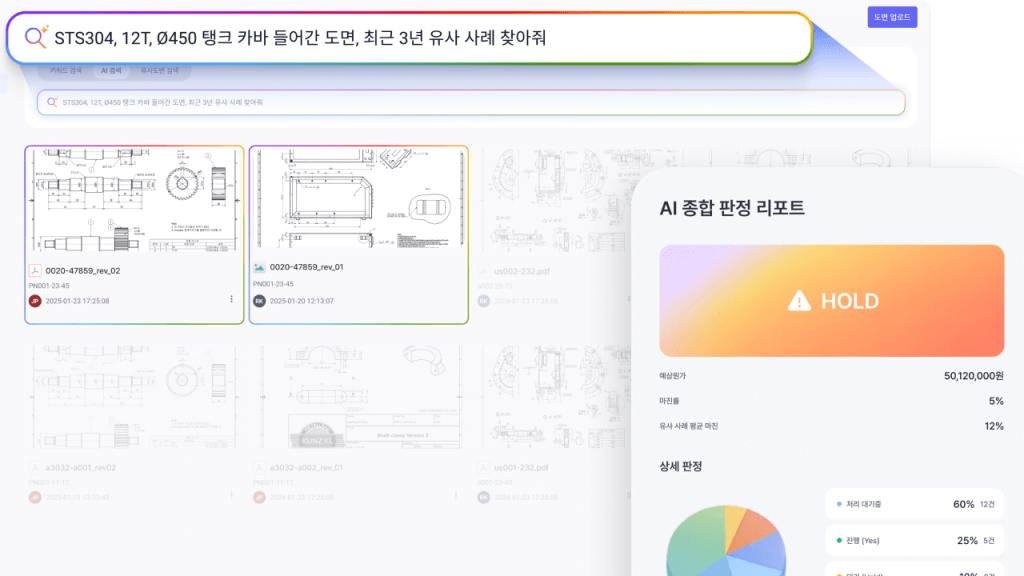도면 데이터를 기업의 표준 자산으로 전환하고 검색부터 비교, 분석, 판단까지 자동화합니다