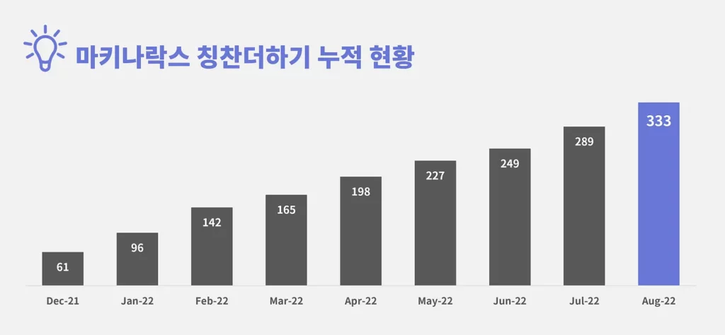 매달 모아진 칭찬들을 정리하면서 담당자인 저는 긍정의 기운을 잔뜩 받아가요. 그리고 마키나원분들을 더 알아가는 시간이 되고 해요. ‘이런 일을 하시는구나, 이런 도움을 주셨구나, 이렇게 열심히 일하시는구나, 이런 따뜻한 마음을 가지신 분이구나!’하고 칭찬받으신 분들의 새로운 면들을 보곤 하거든요.