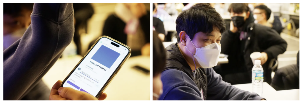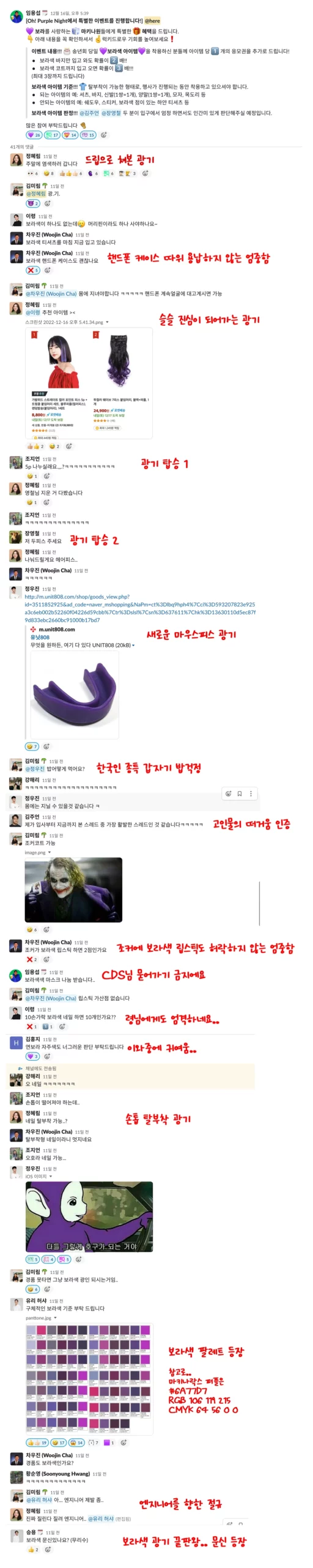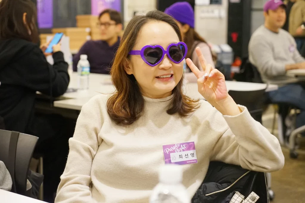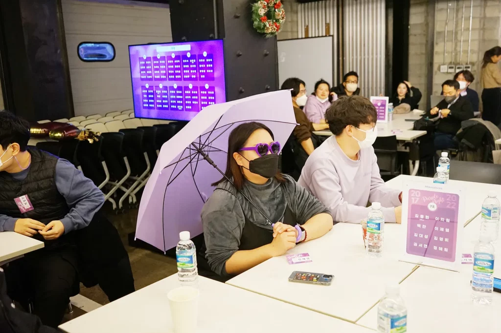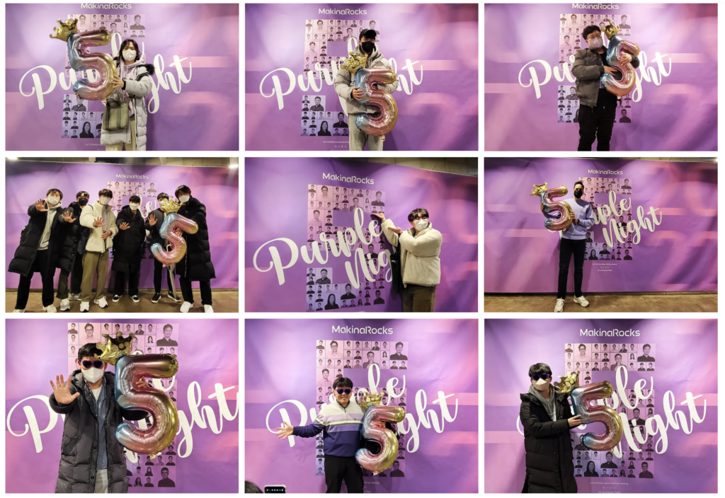 제가 마키나락스에 조인한지도 어느덧 1년이 되었는데요. 저는.. 저희 팀원 분들이 이렇게 열정적인 분들이신 걸 이날 처음 알았어요.😂 항상 뚝심있게(!) 검정 옷을 고집하던 마키나원들도 이날만큼은 검은 옷을 벗어던지고 다양한 퍼플 착장을 선보였습니다. (사실 검정색이 더 많았던 건 함정)