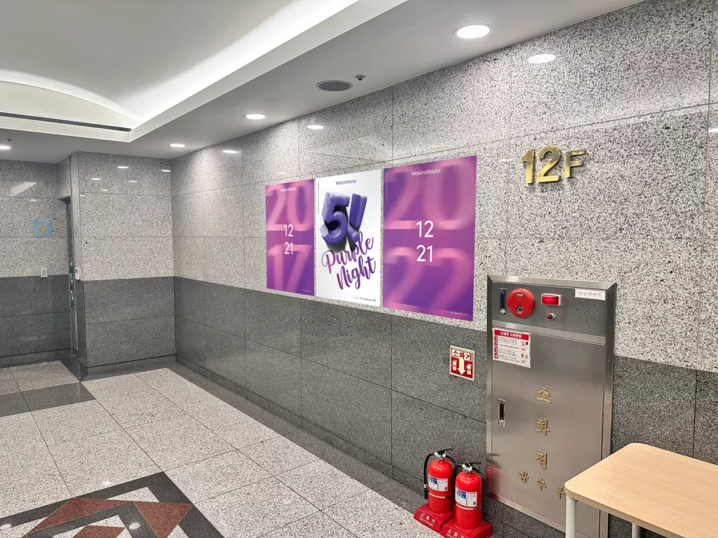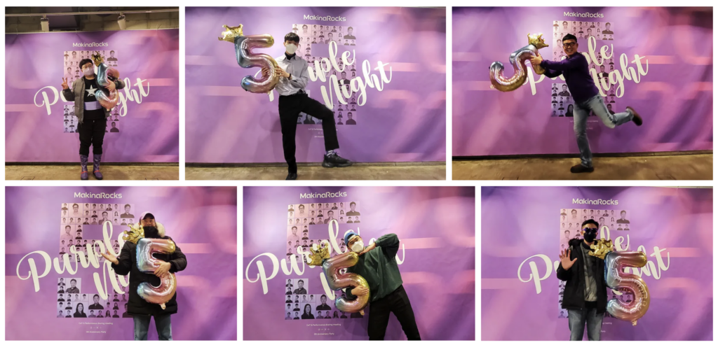 이처럼 특별한 마키나락스의 5주년을 기념하고, 또 마키나락스가 처음으로 주최하는 year-end party인만큼 우리의 아이덴티티를 담고 싶었어요. 마키나락스의 브랜드 컬러인 “퍼플(Makina Purple)”의 무드를 담고, 5주년을 기념하는 의미로 5! Purple Night이라는 행사명을 짓게 되었어요.