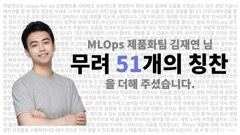 - MLOps Engineer 영철 님, TF 모집 공지에 1등으로 자원하신 그저 빛.. 행사 오프닝 전부터 즐거운 분위기 만들어주신 덕분에 팀원들이 함께 즐길 수 있었던 거 같아요. 마키나락스 진행의 신으로 임명합니다.