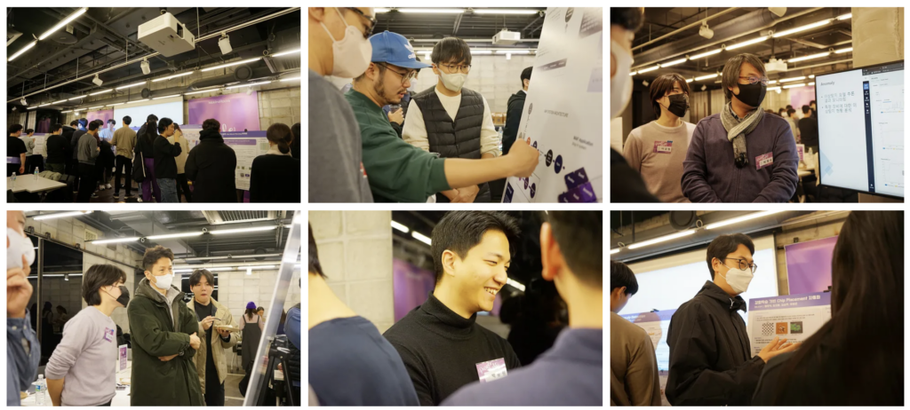 성과공유회와 캐치업이 끝난 뒤에는 제2회 ExIT 행사가 진행되었습니다. 한해 동안 기술적으로 이룬 성과들을 포스터 형태로 소개하며 엔지니어 간의 기술 교류를 하는 시간이었는데요. 소프트웨어 엔지니어들은 머신러닝 관련 기술을 배우고, 머신러닝 엔지니어들은 마키나락스의 제품과 서비스 플랫폼이 어떻게 만들어지고 어떻게 활용될 수 있는지를 배우는 시간을 가졌답니다.