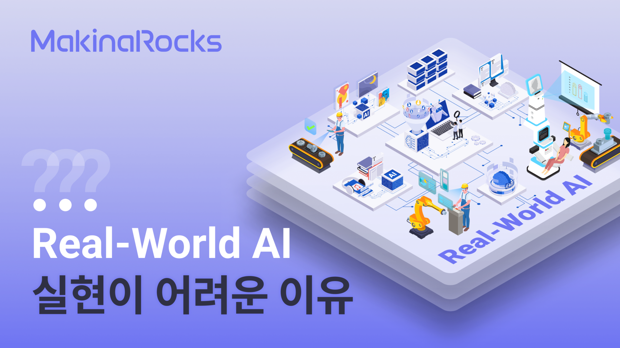 우리가 그리는 Real-World AI. 누구나 도전할 수 있지만 아무나 실현하지는 못할 것입니다. 글로벌 제조 기업의 AI 관련 목표 달성 성공률은 16% 수준에 불과합니다. 그만큼 Real World에 AI를 적용하고 비즈니스 임팩트로 연결하기까지는 수많은 어려움을 뛰어넘어야 합니다. 구체적으로 어떤 난관들이 있을까요? Real-World AI가 어려운 이유를 정리했습니다.