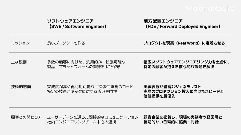 SWE(ソフトウェアエンジニア)とFDE(フォワード・デプロイド・エンジニア/前方配置エンジニア)の違い