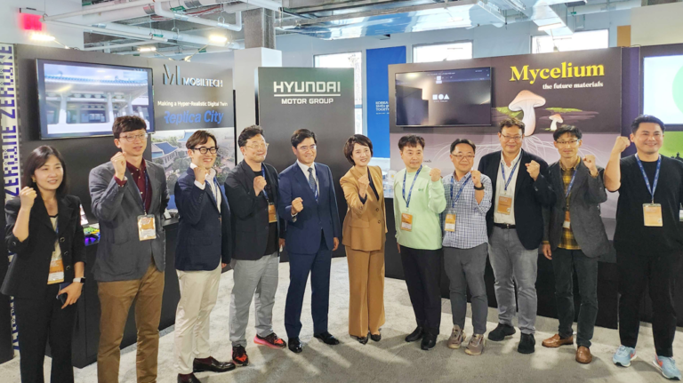 중소벤처기업부가 뉴욕에서 개최한 ‘한·미 스타트업 서밋’에서 국내 유망 스타트업들이 다양한 제품과 서비스를 소개했다. ‘현대차 공동관’에는 제조 분야 특화 인공지능(AI) 기업 마키나락스 등이 참여했다.