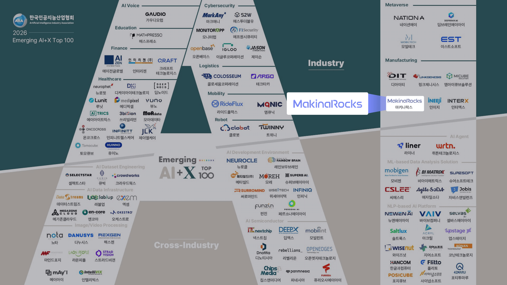 2026년 1월 27일(화), 서울 – 산업 특화 AI 기업 마키나락스(대표=윤성호)는 한국인공지능산업협회가 주관하는 ‘2026 Emerging AI+X Top 100’에 선정됐다고 27일 밝혔다.