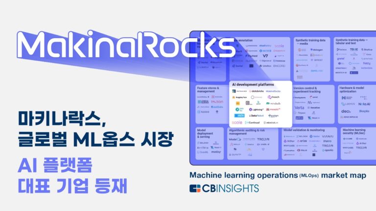 마키나락스가 글로벌 리서치 기업 CB인사이트가 발표한 ‘머신러닝 운영 시장 맵’의 ‘AI 개발 플랫폼’ 부문에 국내 기업으로는 유일하게 등재되었습니다.